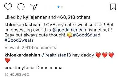 She uploaded a picture of her doing a photoshoot for her Good American jeans line, and her boyfriend Tristan Thompson commented “DAMN” coupled with some heart eye emojis.