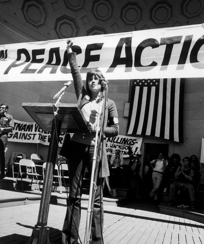 Throughout the 1970s, Fonda rallied at college campuses across the U.S. to raise funds for the Vietnam Veterans Against the War (VVAW), with the actor famously travelling to Hanoi in 1972 to witness the conflict first-hand.