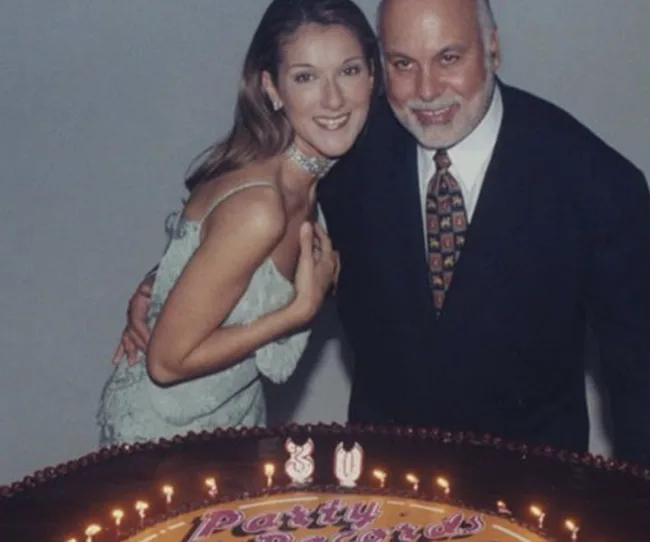 Celine is pictured here with her late husband, Rene Angelil, on her 30th birthday.