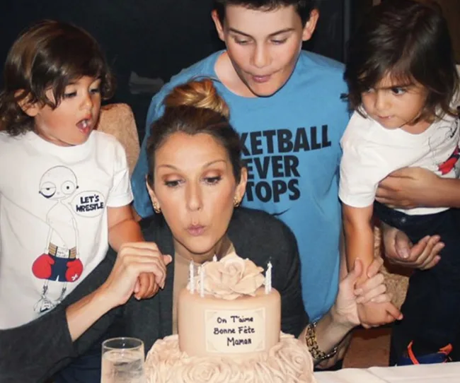 All the boys together! Celine blows out the candles in 2013 with her loving children – Rene, Nelson and Eddy.