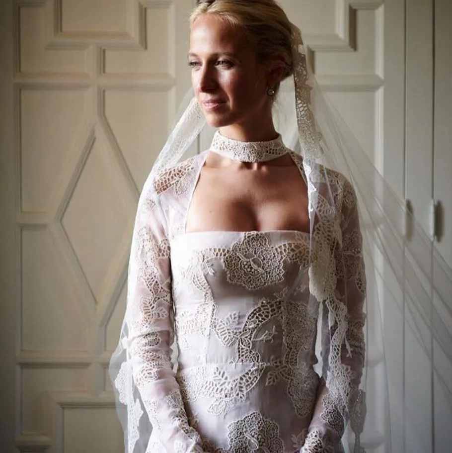 (Getty)Misha wore a stunning delicate lace dress for her wedding day later that month.