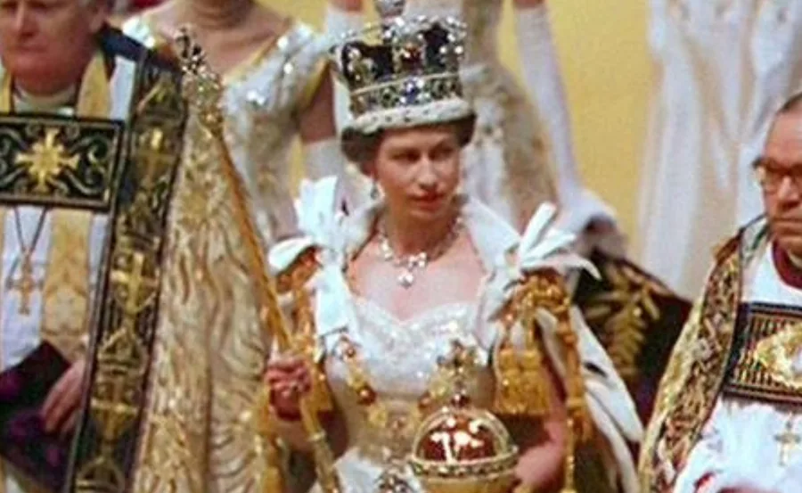 Her elaborate gown and ermine-trimmed robe was so heavy, she found it difficult to walk, whispering to Geoffrey Fisher, the Archbishop of Canterbury, “Get me started!”