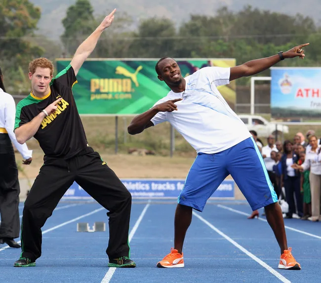 Okay, so maybe Usain went a little easy on the prince, but that didn’t stop them from striking his iconic pose to finish it off.