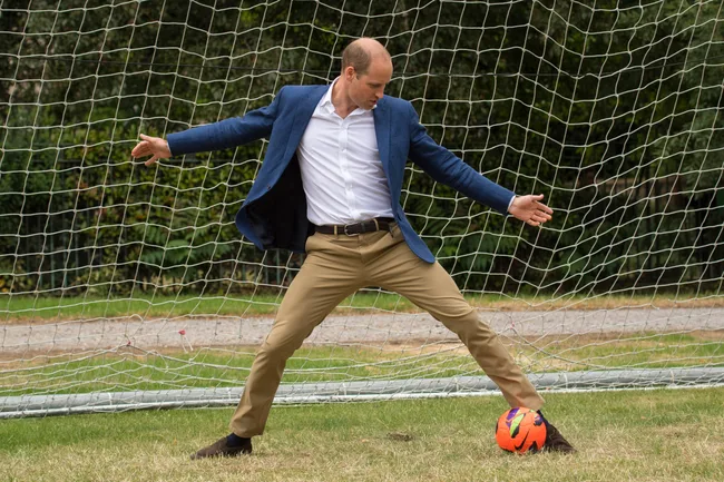 Prince William took his job as goal keeper very seriously during a visit to a girls soccer program in 2017.