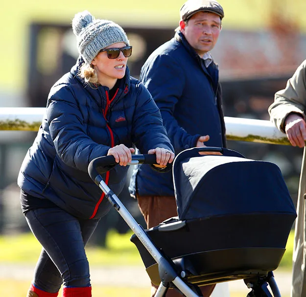 Zara bundled up warm to take Mia Grace on her first public outing at the Barbury point-to-point races in Wiltshire.