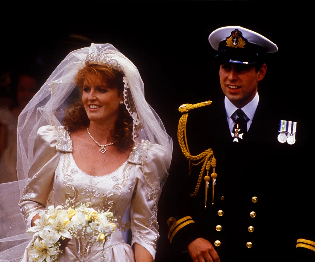 Sarah, Duchess of York and Prince Andrew on their wedding day.