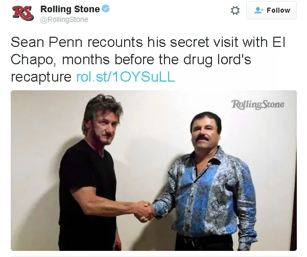 Penn’s article includes a photograph of the actor and the drug lord shaking hands, which appeared on Rolling Stone’s website last night.