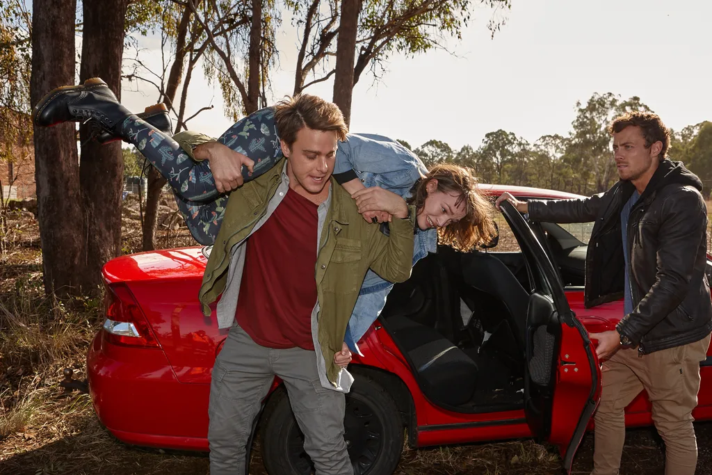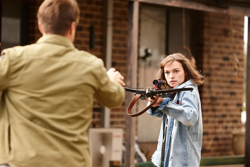 For Home And Away actors Courtney Miller and Tim Franklin, that’s precisely what happened during their first scene together, which involved a crossbow – and a whole lotta nerve!