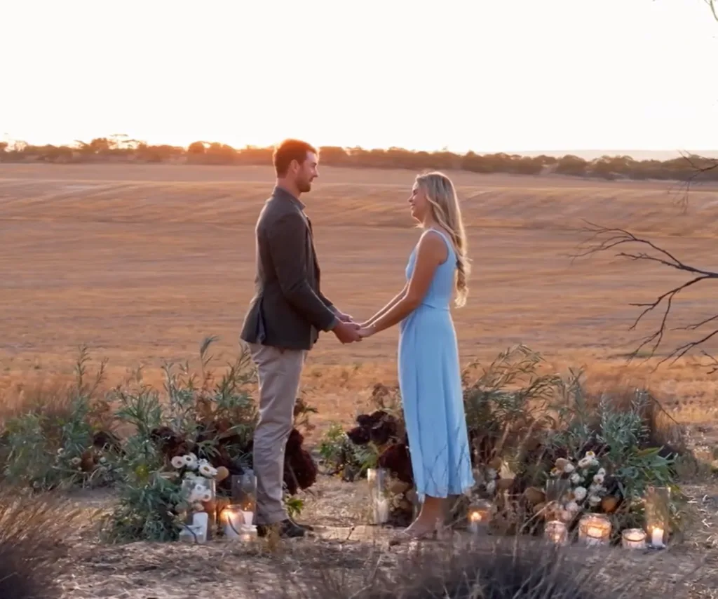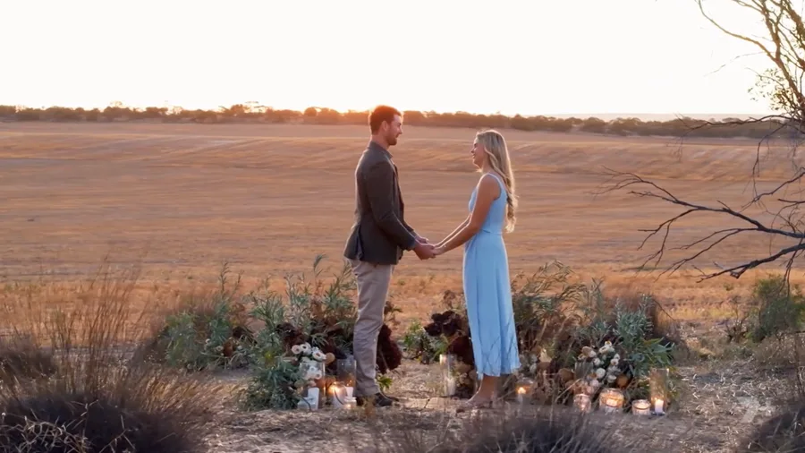 As the season drew to an end, Farmer Thomas decided to confess how he truly felt about the 35-year-old teacher in one of his favourite spots on the farm at sunset, surrounded by flowers and candles.