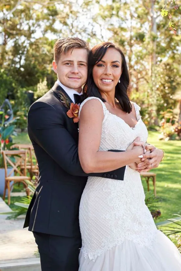 Mikey and Natasha pictured embracing on their wedding day.