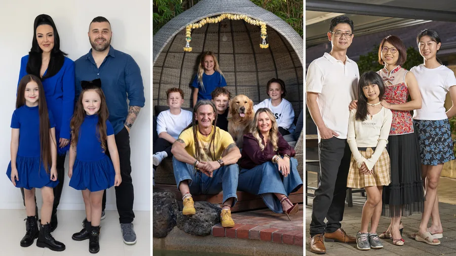 This Newcastle-based couple met online a few years ago. Courtney is a TikTok content creator while John works in IT. They are joined by their three kids, Kyan, 12; Landon, 10; and Kingsley, 2.