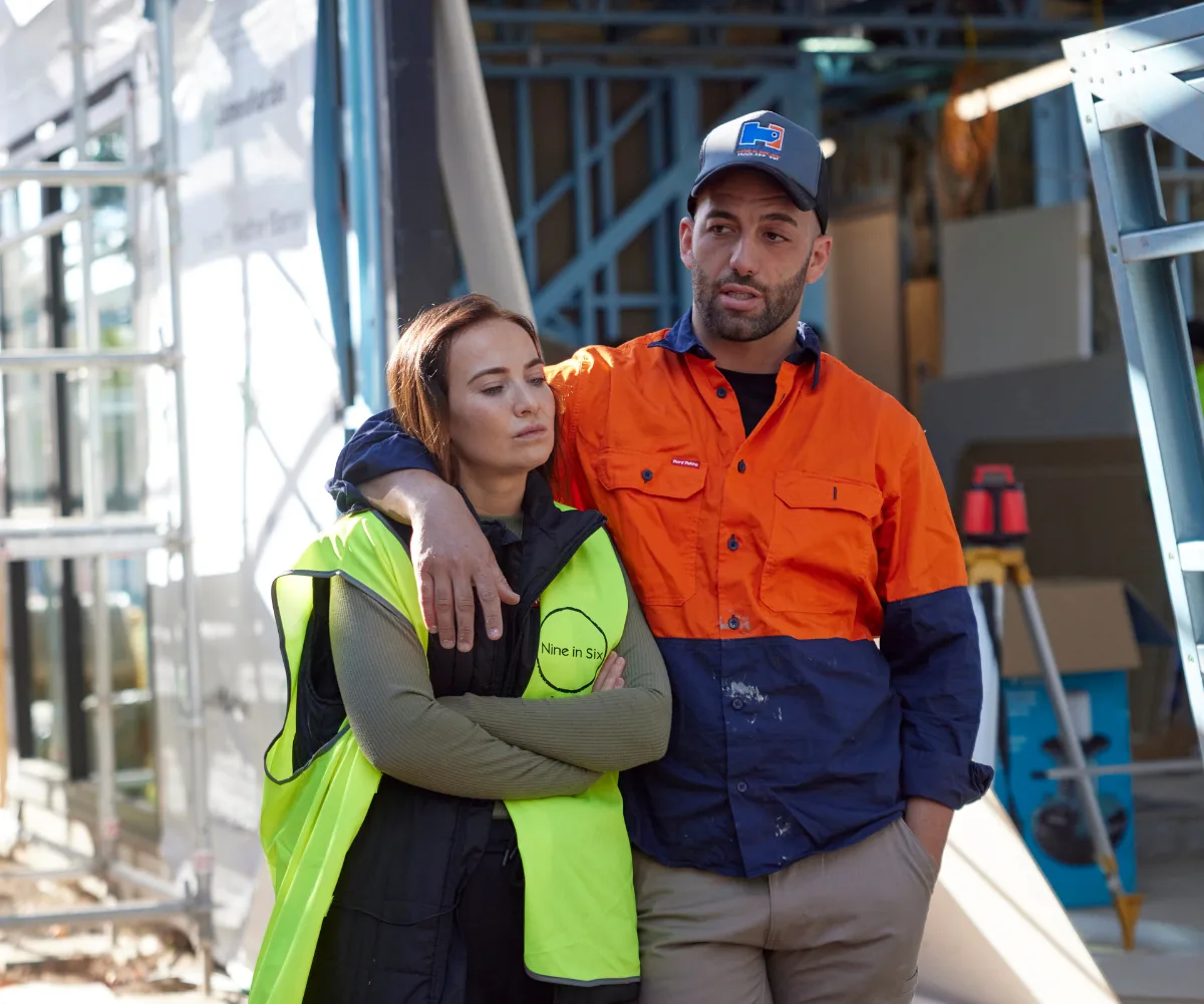 In previous episodes, the Blockheads were gathered off-site for an art challenge. However, Grant – who is teamed up with wife Courtney – decided to stay back in order to complete plastering the walls.
