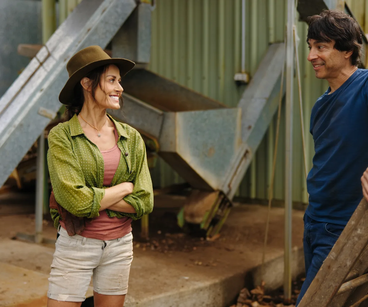The Nut Farm was filmed near where Madeleine lives in northern New South Wales, and she says its environmental message is “really close to my heart”. As for lugging around bales of hay in her role as a farmer, that came naturally.