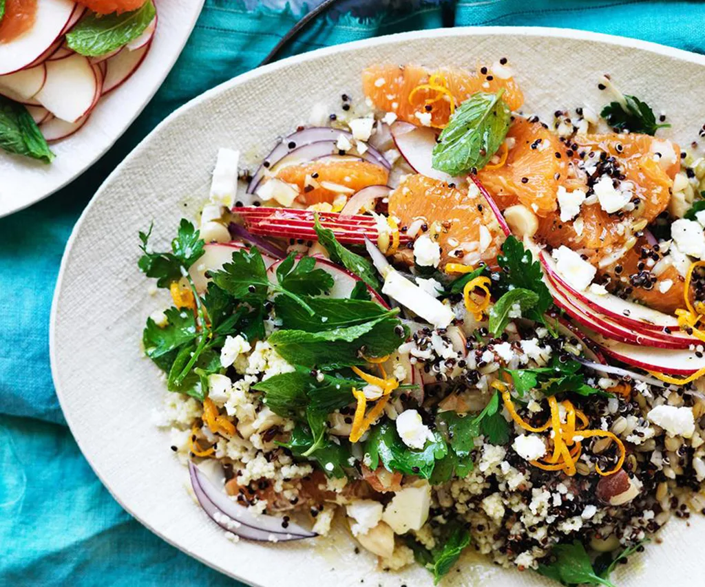 Try this five grain salad with feta and oranges for a sweet and nutty side dish!