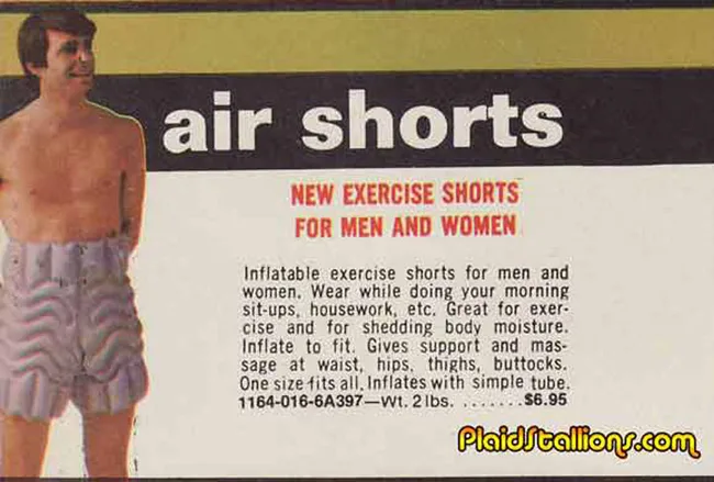 From a sauna suit that promises to help you “lose inches in moisture” while doing the housework to air shorts that “massage” the body into a slimmer shape, 1970s fitness equipment was vastly different to the treadmills of today.