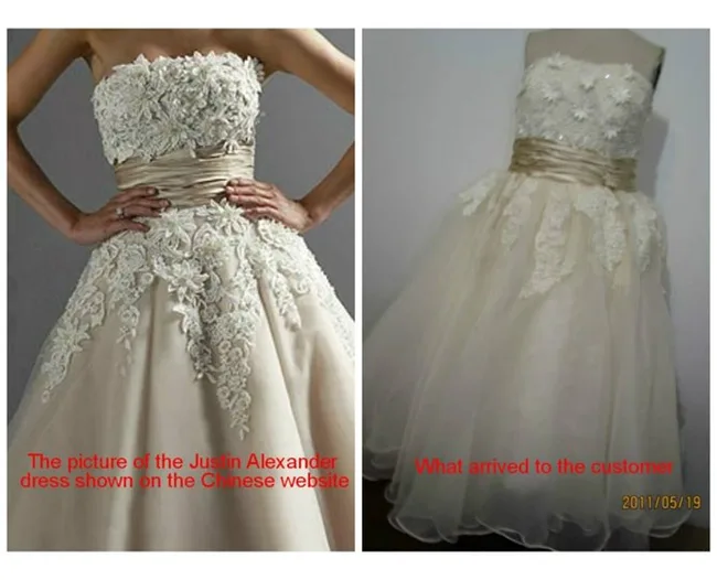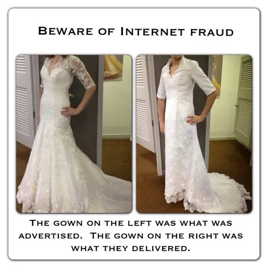 And whilst the expression “you get what you pay for” has never been more true, it hasn’t stopped these poor unsuspecting brides-to-be from being scammed out of their money by sketchy online retailers.