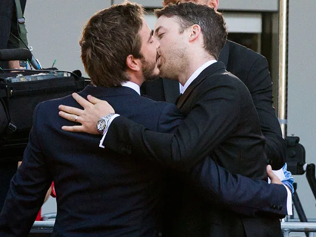 Hamish Blake gets up VERY close and personal Packed to the Rafters star Ryan Corr.