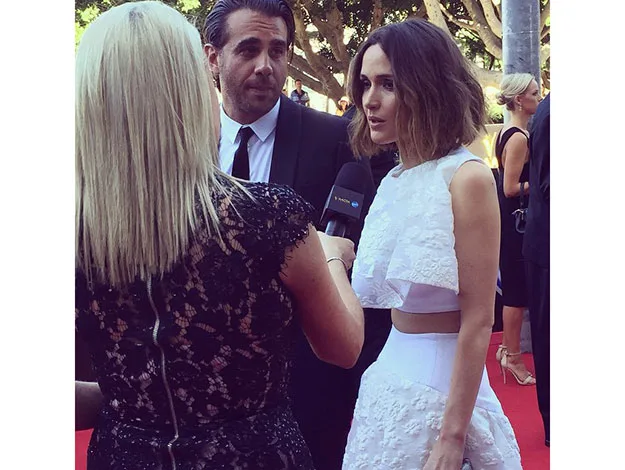 Rose Byrne gets interviewed on the red carpet.