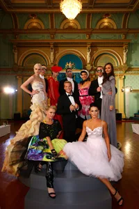 TV personality and presenter Jules Lund poses with models at the opening night party for the L’Oreal Melbourne Fashion Festival.