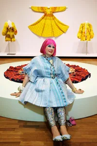 Designer Zandra Rhodes poses during the Zandra Rhodes VIP Showing as part of the L’Oreal Melbourne Fashion Festival.