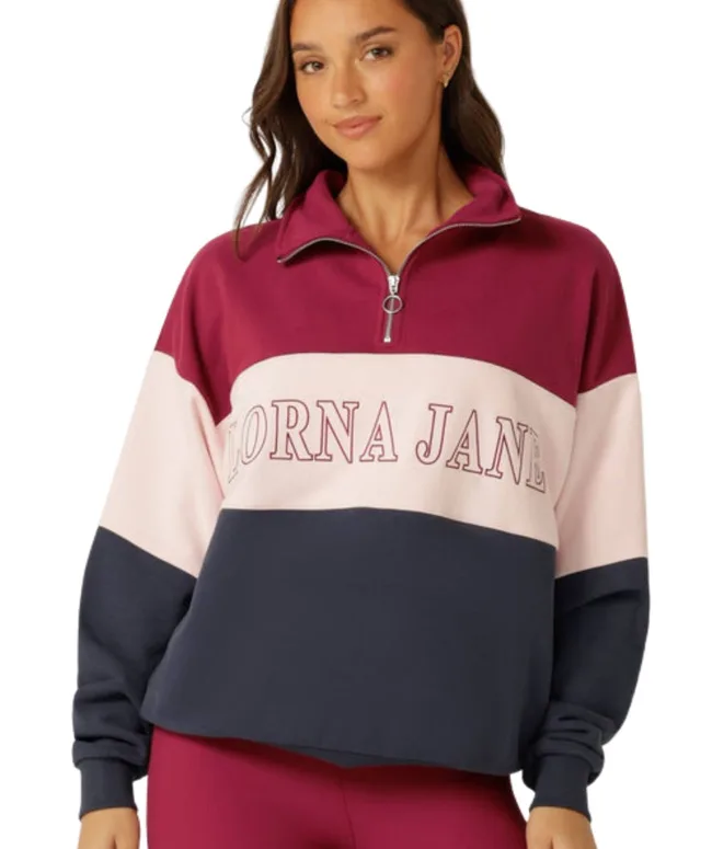 With its trendy panelled design and handy quarter zip, it elevates your workout wear or pares with jeans casual days when you want to stay cosy but look sharp.