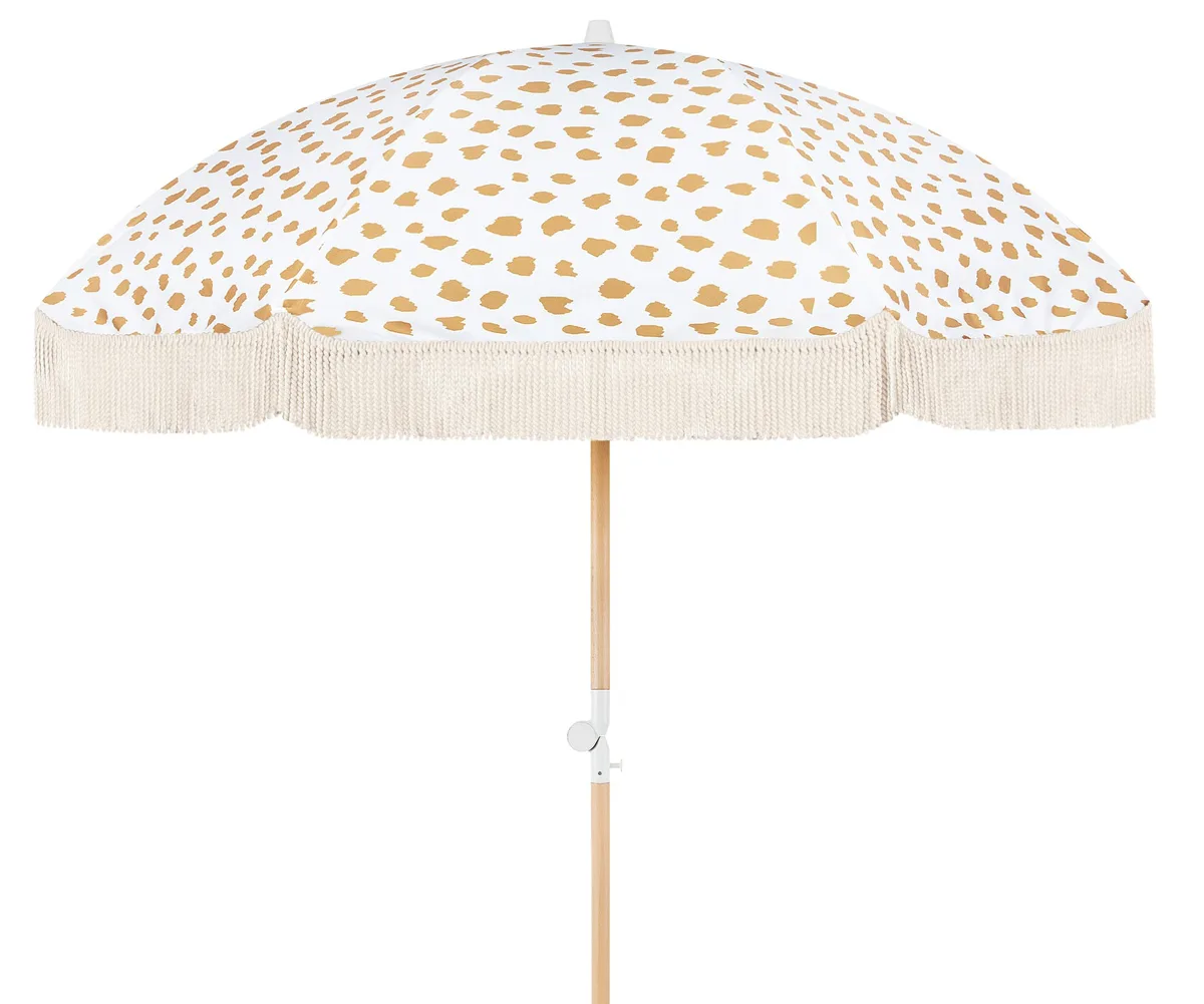 Whether you are picnicking or spending a day on the sand, a beach umbrella is essential to keep you sheltered, shaded and protect you from the sun. This animal print number in a warm, golden tone is stylish and the UPF50+ fabric will keep you protected.