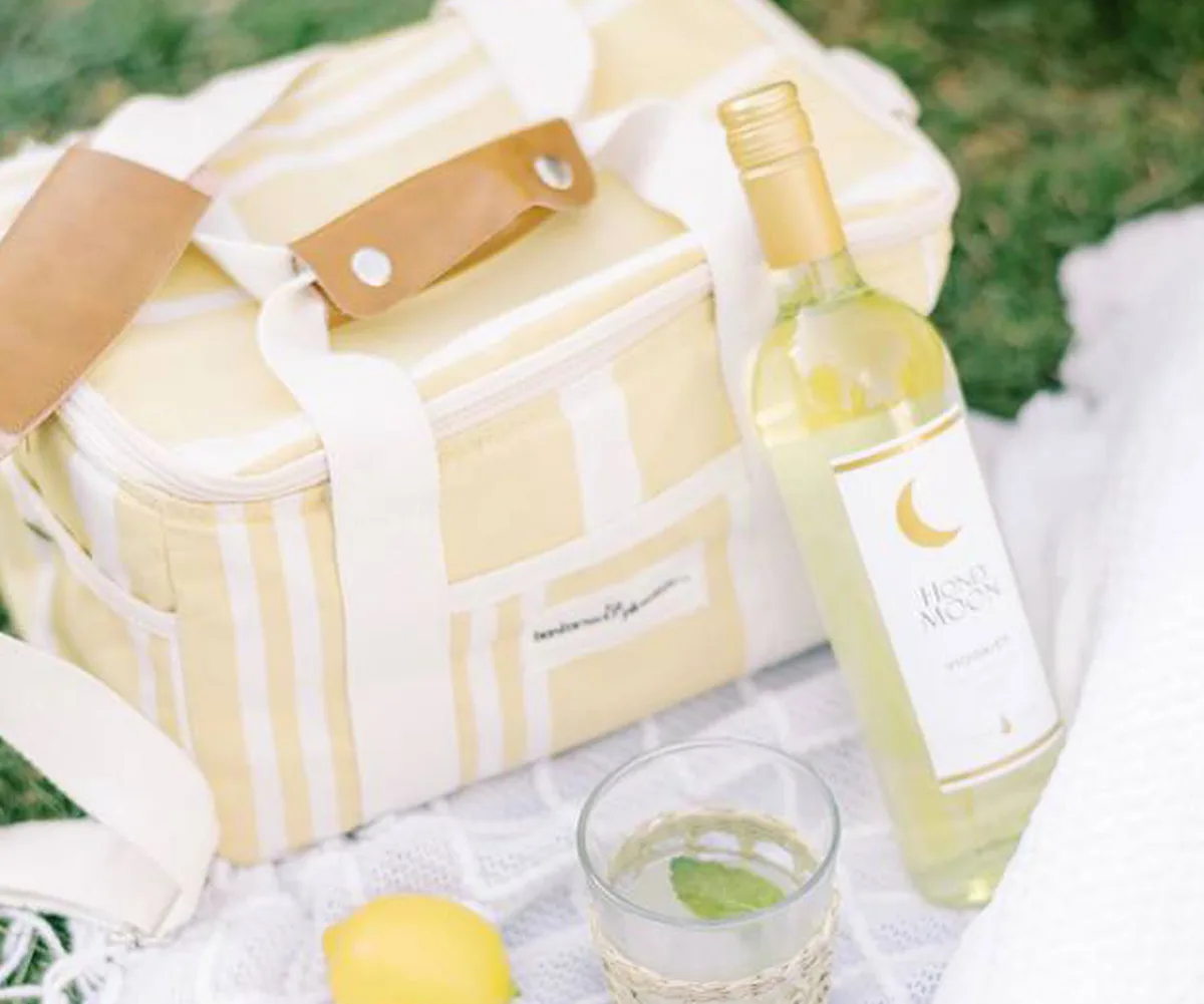 Whether you’re heading to the beach or the park or a picnic, you’ll need an ice cold beverage. This cooler bag will keep your drinks and snacks chilled, while its vintage yellow striped fabric and leather handles gives it a chic vintage look.
