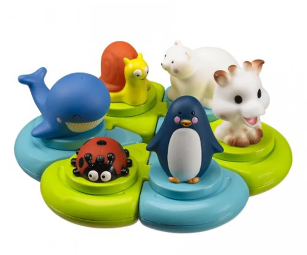 This one is for baby’s first Christmas. Shapes fit together to become a toy set, encouraging baby’s motor skills, concentration and logic. The Les Folies Bath Puzzle, $41.90.