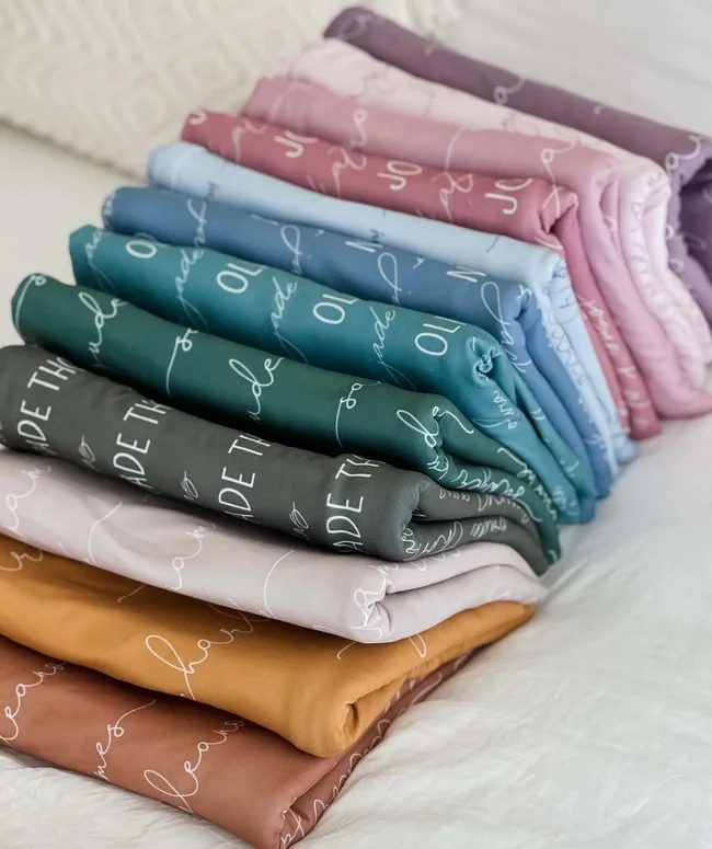 Personalised baby name swaddle blanket, $75 at Caden Lane