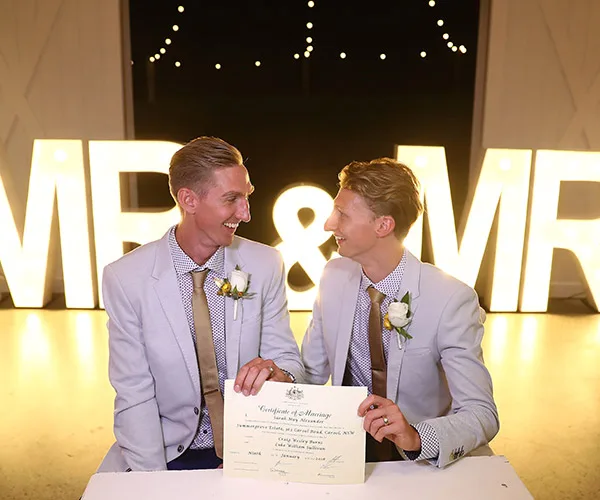 Craig Burns and Luke Sullivan married just after midnight at Summergrove Estate on the Gold Coast.