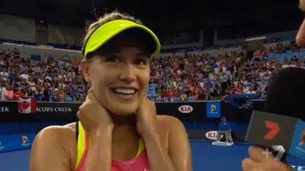 The world number 7, Eugenie Bouchard smiled awkwardly when asked to “twirl” by a commentator.