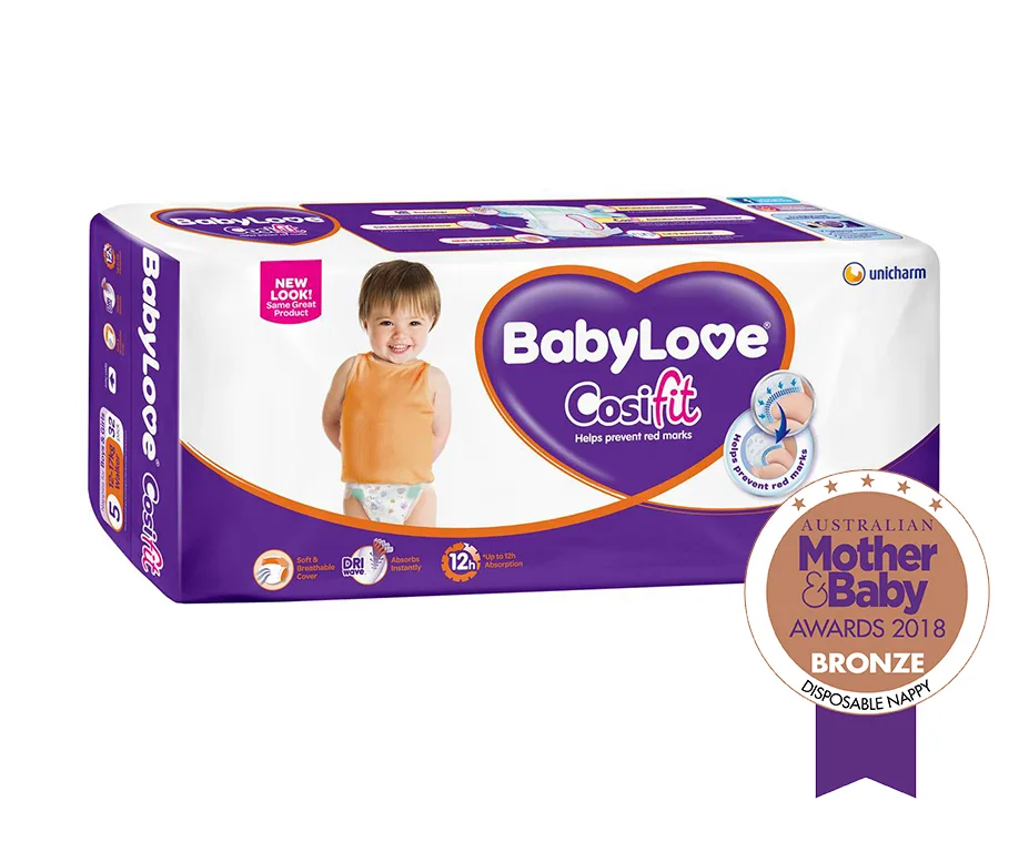 BabyLove Cosifit Nappies, $27, feature advanced technology which helps prevent harsh, red marks on baby’s delicate skin and provides advanced leakage protection.