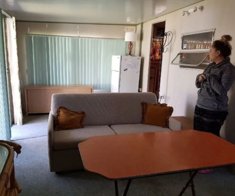 “Welcome to our caravan! We haven’t redecorated in over 5 years but we just love it (yes everything is from Kmart) we were saving to go to Europe in 2017 when we saw this old van and thought f-ck Europe let’s have our own piece of paradise,” Sarah-Jane wrote.