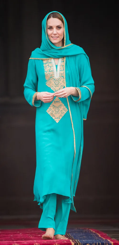 Kate looked absolutely stunning in a bespoke teal Shalwar Kameez, which was handmade by Maheen Khan from London boutique O’nitaa.